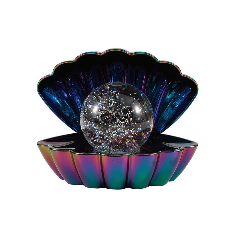 ΛΑΜΠΑ Led σε σχήμα κοχυλιού που αλλάζει χρώμα με glitter και νερό που περιστρέφονται μέσα στη σφαίρα μαργαριταριού.