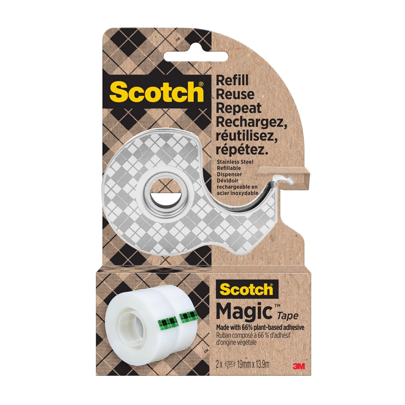 • ΑΝΑΓΕΜΙΣΜΑ, ΕΠΑΝΑΧΡΗΣΙΜΟΠΟΙΗΣΗ & ΕΠΑΝΑΛΗΨΗ: Η ταινία Scotch® Magic™ κατασκευασμένη με 66% ρολά επαναπλήρωσης φυτικής κόλλας είναι συμβατή με τους επιτραπέζιους διανομείς Scotch™ για εύκολη χρήση και μπορεί επίσης να χρησιμοποιηθεί μόνη της